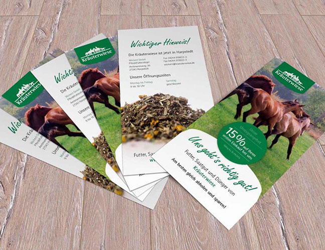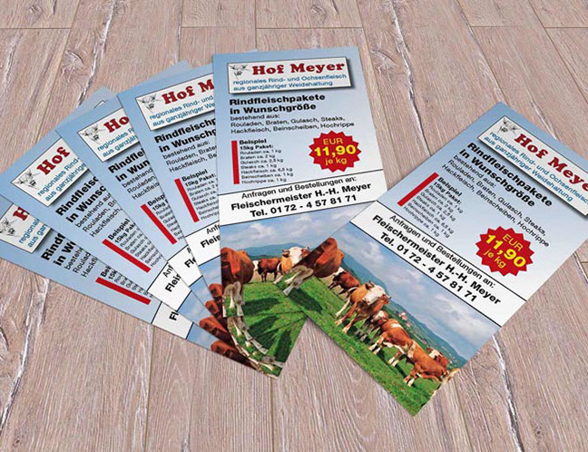 Flyer, Broschüren, Kataloge, Briefbogen, Visitenkarten, Briefumschläge, Schilder, Werbeplanen, Plakate, Schreibtischunterlagen, Türanhänger, Werbesysteme, Roll-Up, Leuchtreklame, Stempel, Fahnen usw...
